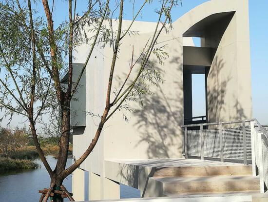 秦皇岛北戴河蔚蓝海岸观景台清水项目,付诸了设计师三元素简单朴素的理念,混凝土+绿色植物+天空,简单自然大方,运用混凝土经得起沉淀的特点,设计出如此静谧且美感十足的清水混凝土。