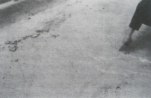 图-6 模板侧向变化引起的开裂 图-7 混凝土浅表面的龟裂