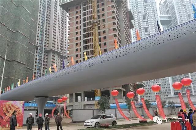 在位于长沙北辰三角洲横四路跨街天桥现场,记者看到,超高性能混凝土外观与普通混凝土并无太大区别。但这座全长74米的桥仅两个桥墩,桥墩纤细处仅60厘米,桥梁的厚度也只有普通混凝土桥的三分之一。